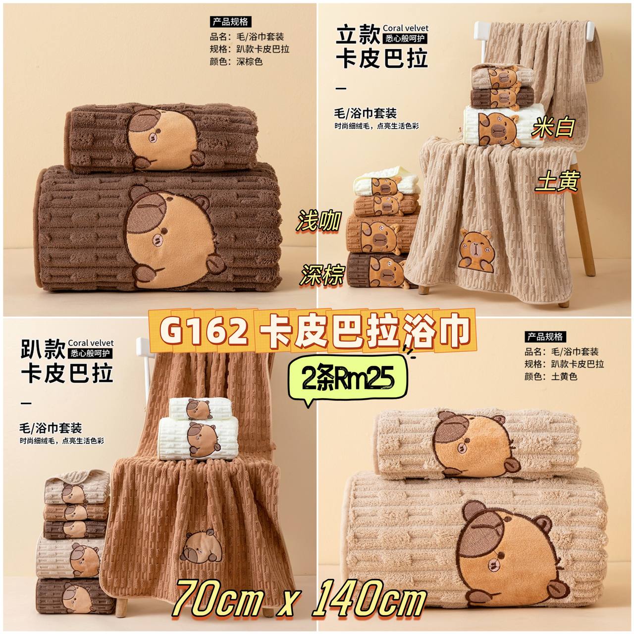 G162 卡皮巴拉浴巾 💰2条Rm25