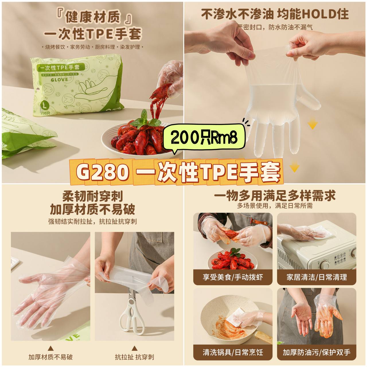 G280 一次性TPE手套 💰200只Rm8