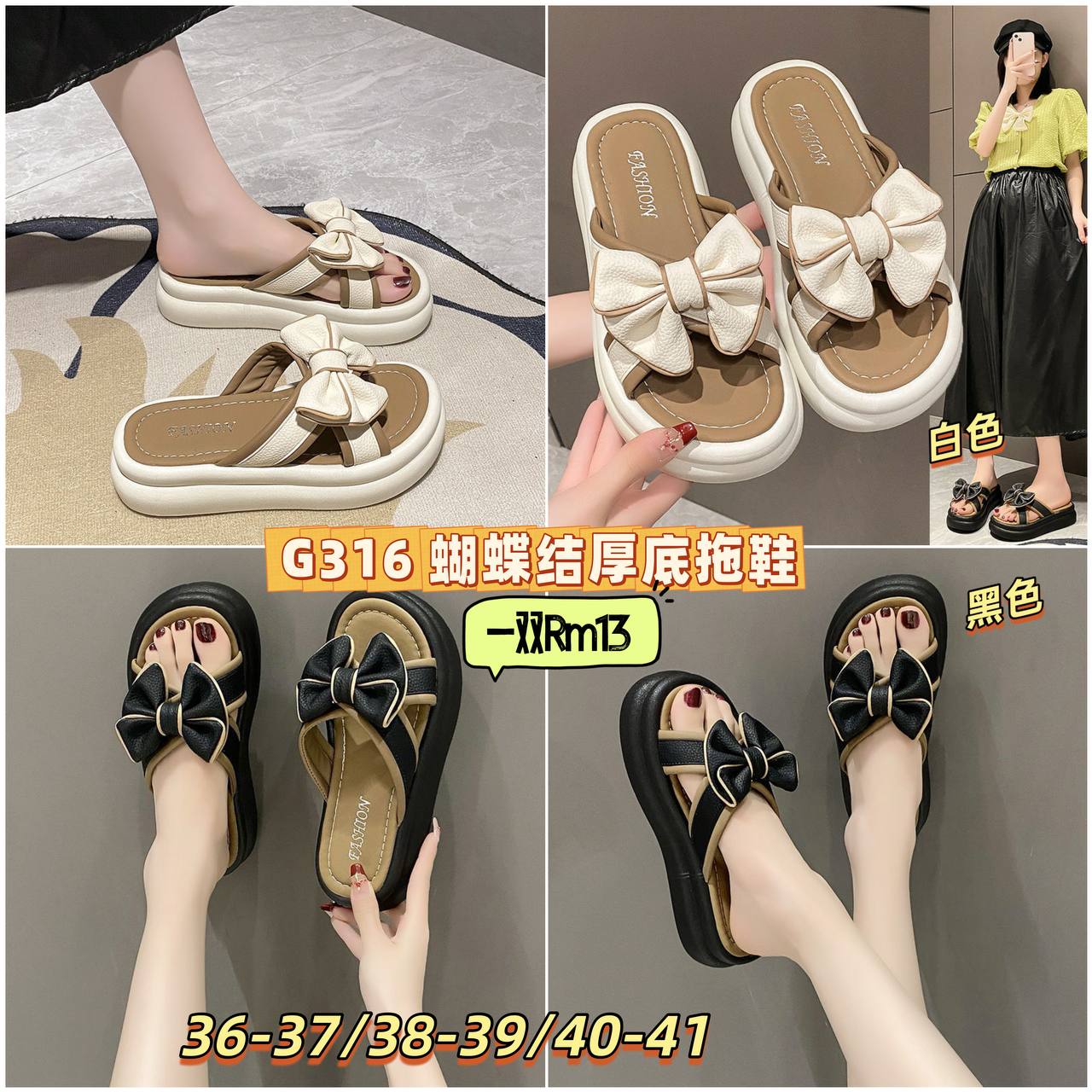 G316 蝴蝶结厚底拖鞋 💰一双Rm13