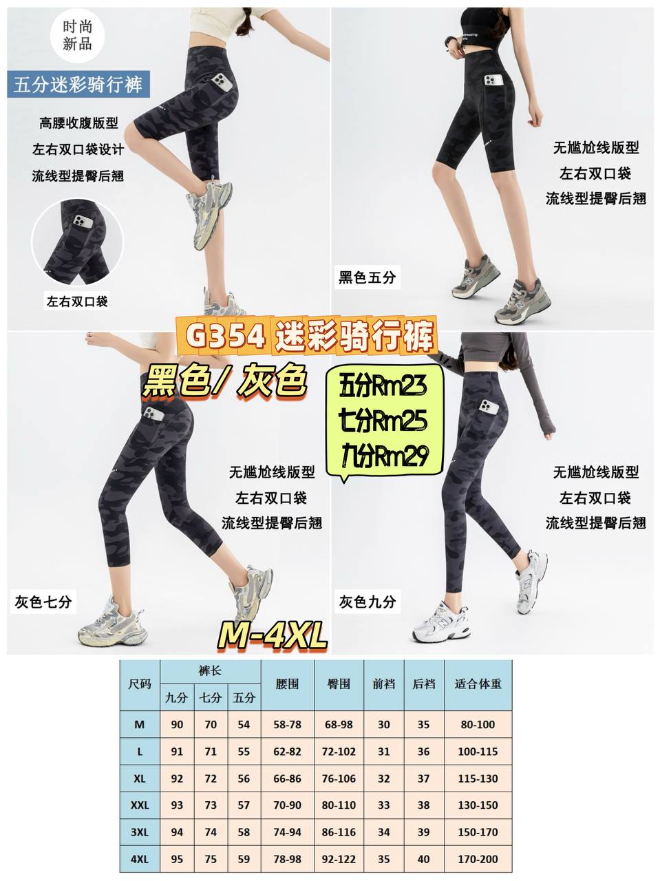 G354 迷彩骑行裤 💰五分Rm23 七分Rm25 九分Rm29