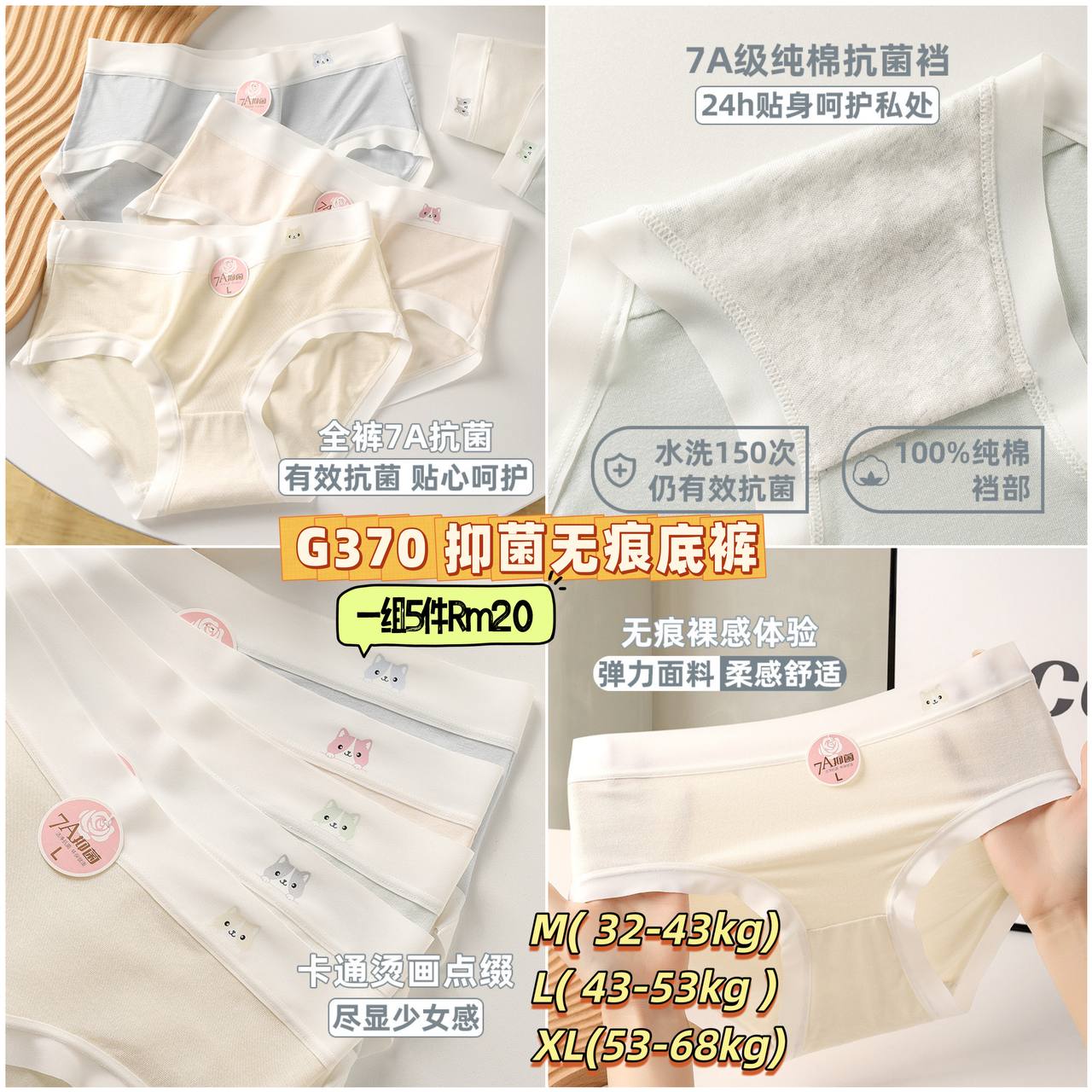 G370 抑菌无痕底裤 💰一组5件Rm20