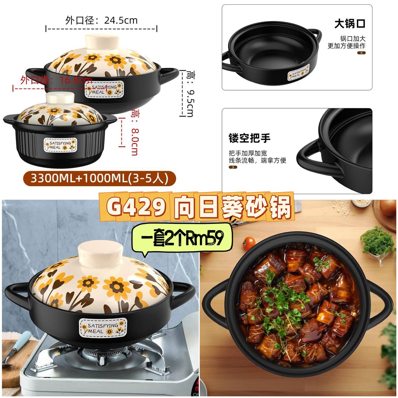 G429 向日葵砂锅 💰一套2个Rm59