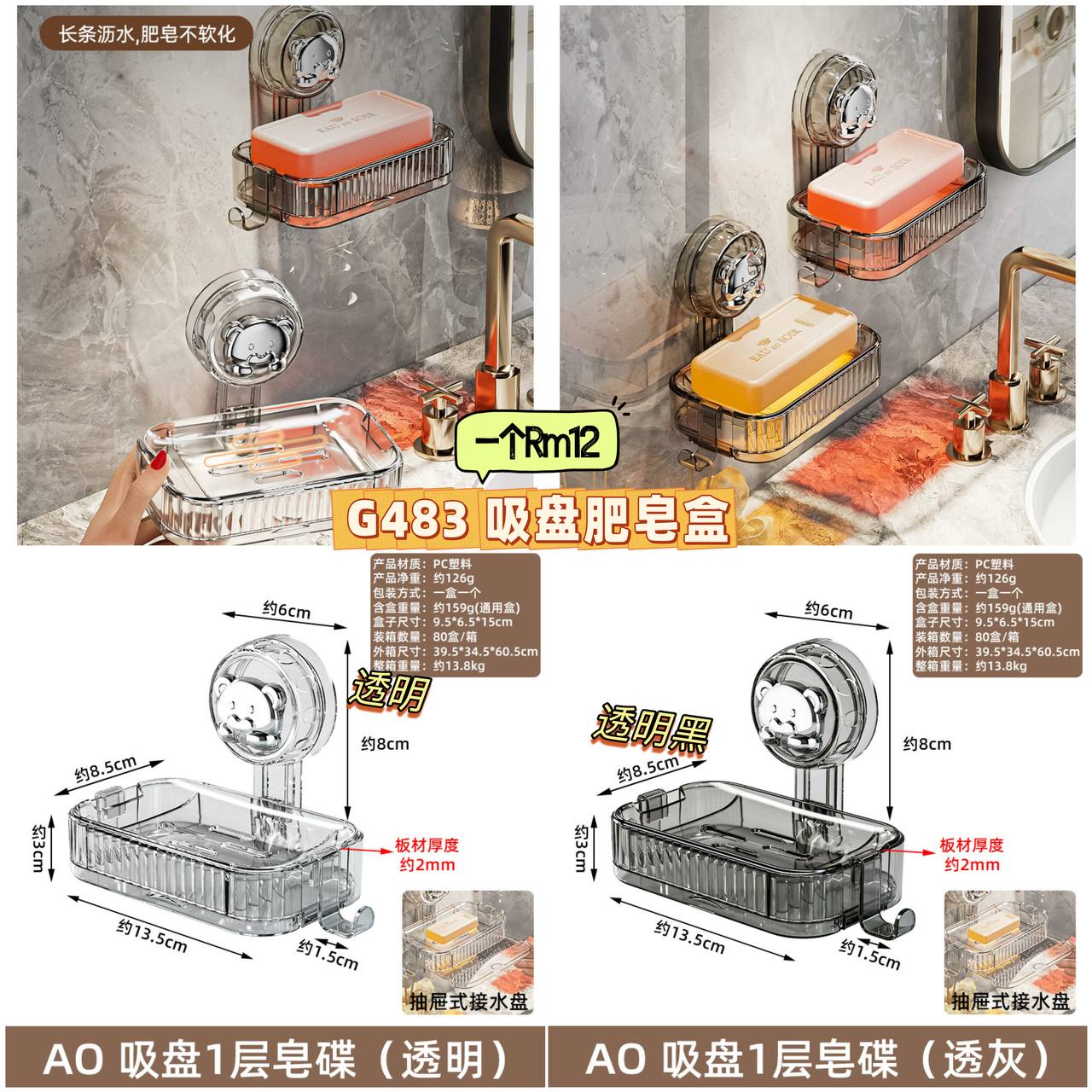 G483 吸盘肥皂盒 (1个)