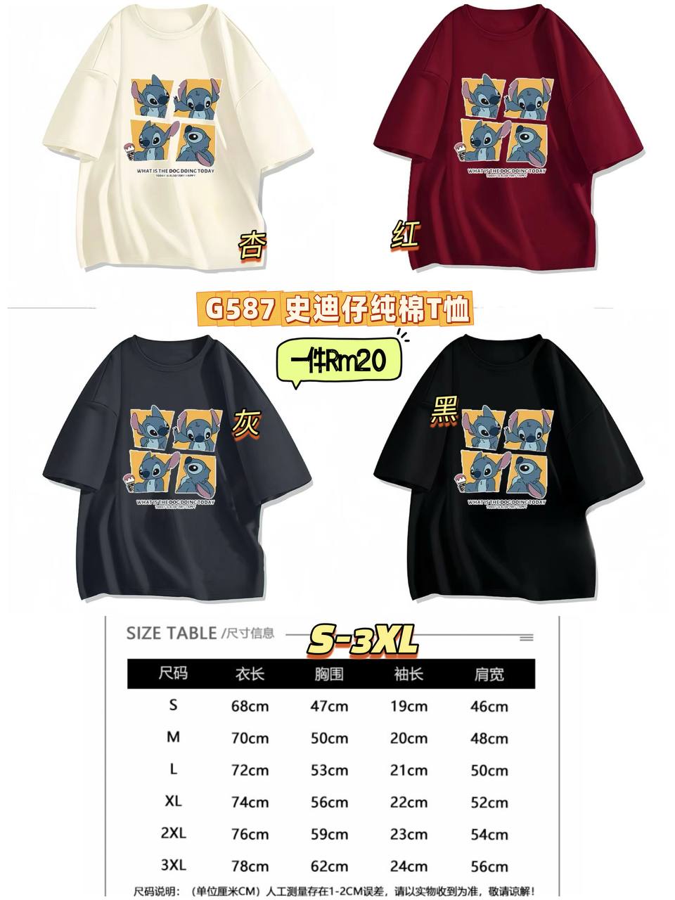G587 史迪仔纯棉T恤 💰一件Rm20