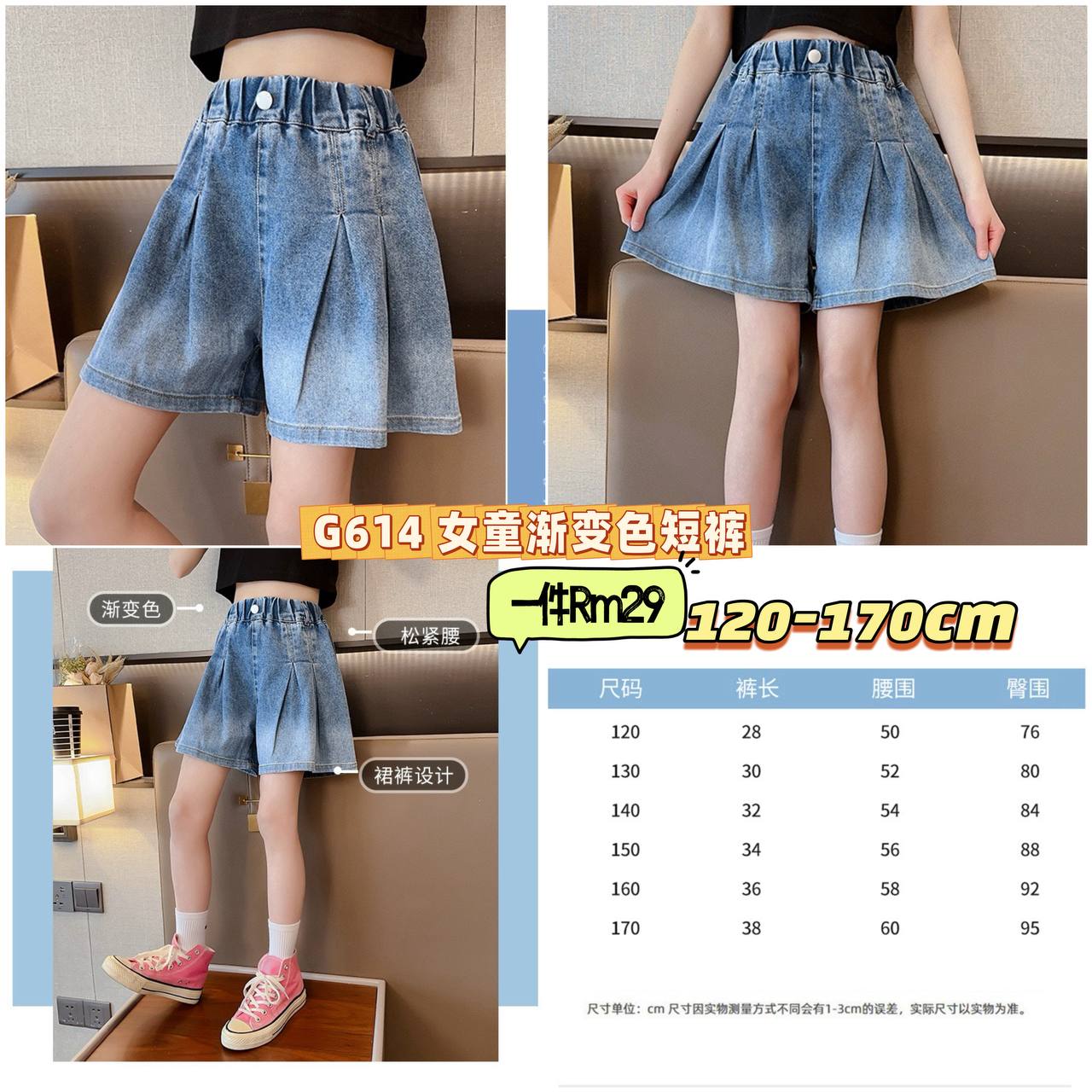 G614 女童渐变色短裤 💰一件Rm29