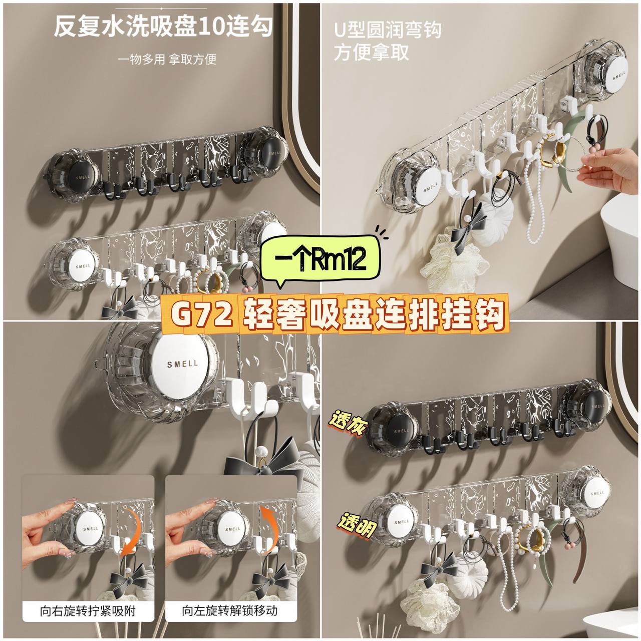 G72 轻奢吸盘连排挂钩