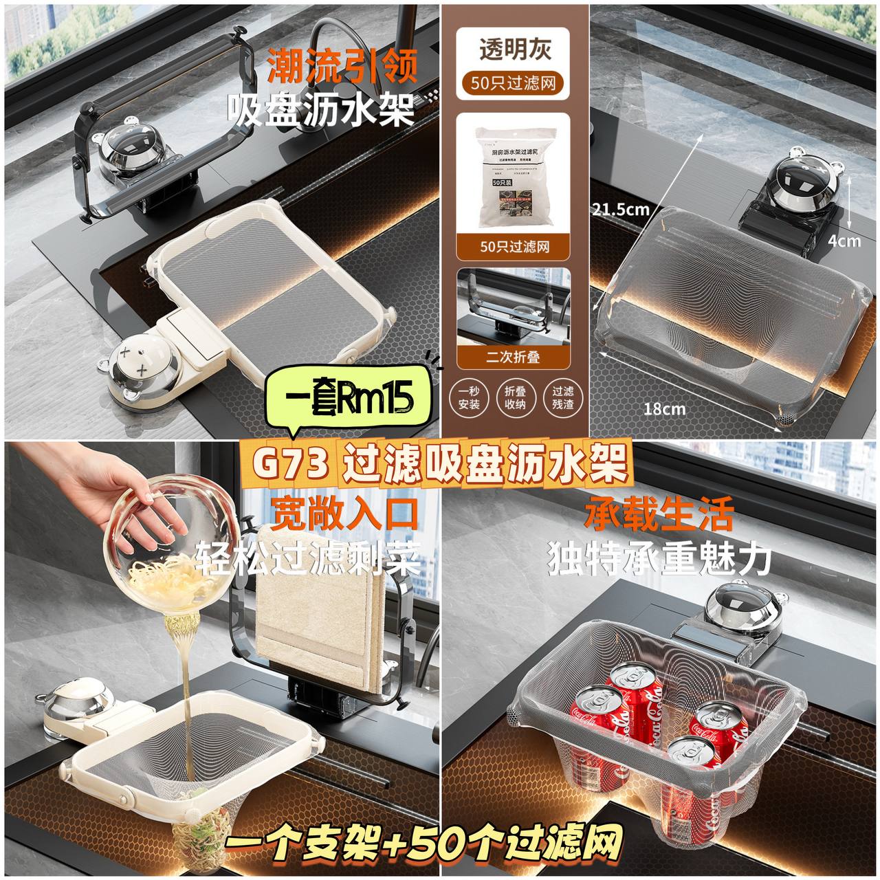 G73 过滤吸盘沥水架 💰一套Rm15
