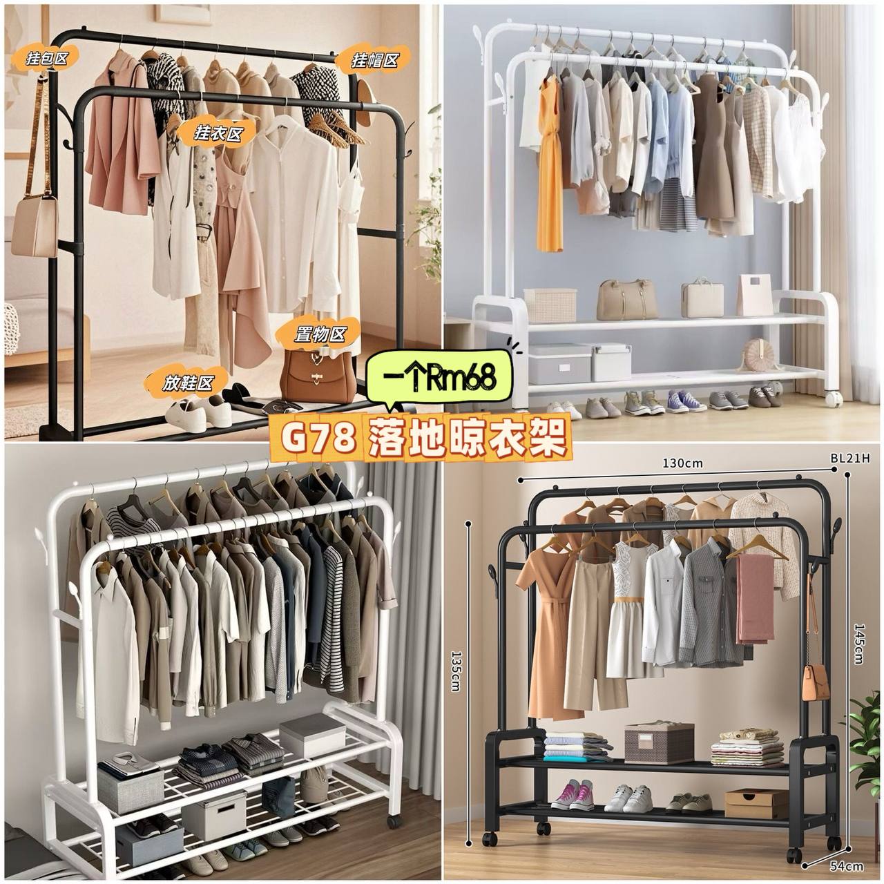 这款双杆落地衣帽架,外观简约时尚,一体成型,分了挂帽区,挂衣区,挂包区,还有放杂物和鞋的地方,占用面积小,使用空间大,还做了防滑珠,晒衣服被子都不怕滑落了
