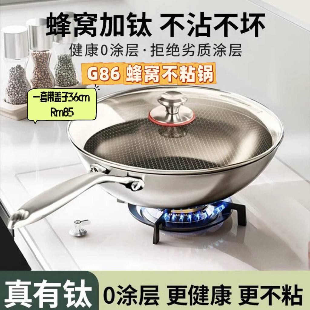 G86 蜂窝不粘锅 💰一套带盖子36cm Rm85