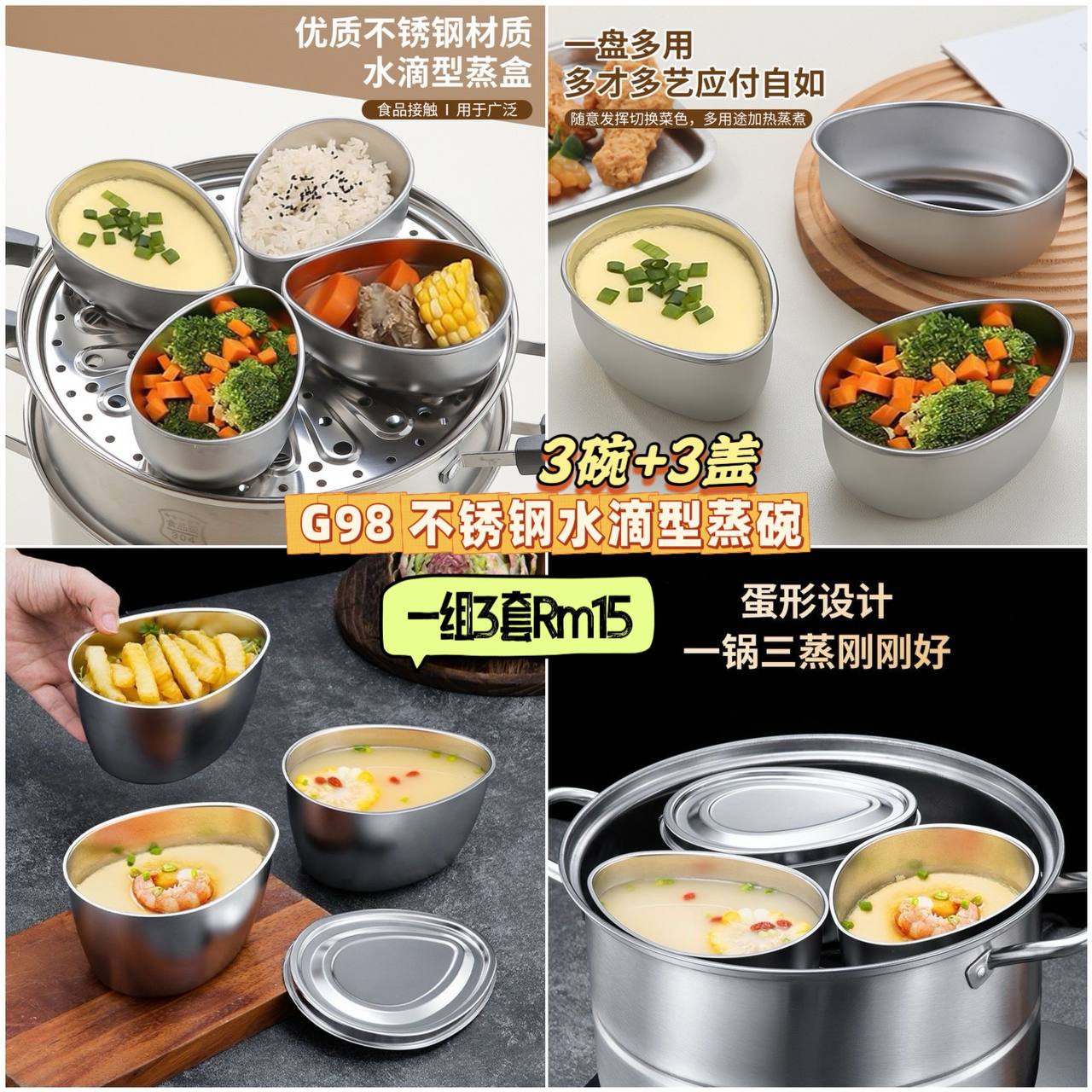 G98 不锈钢水滴型蒸碗 💰一组3套Rm15