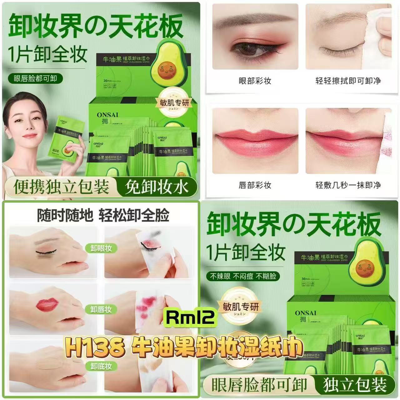VS年底清仓大甩卖🇨🇳 H138 牛油果卸妆湿纸巾 ✅#一盒Rm12 三十片