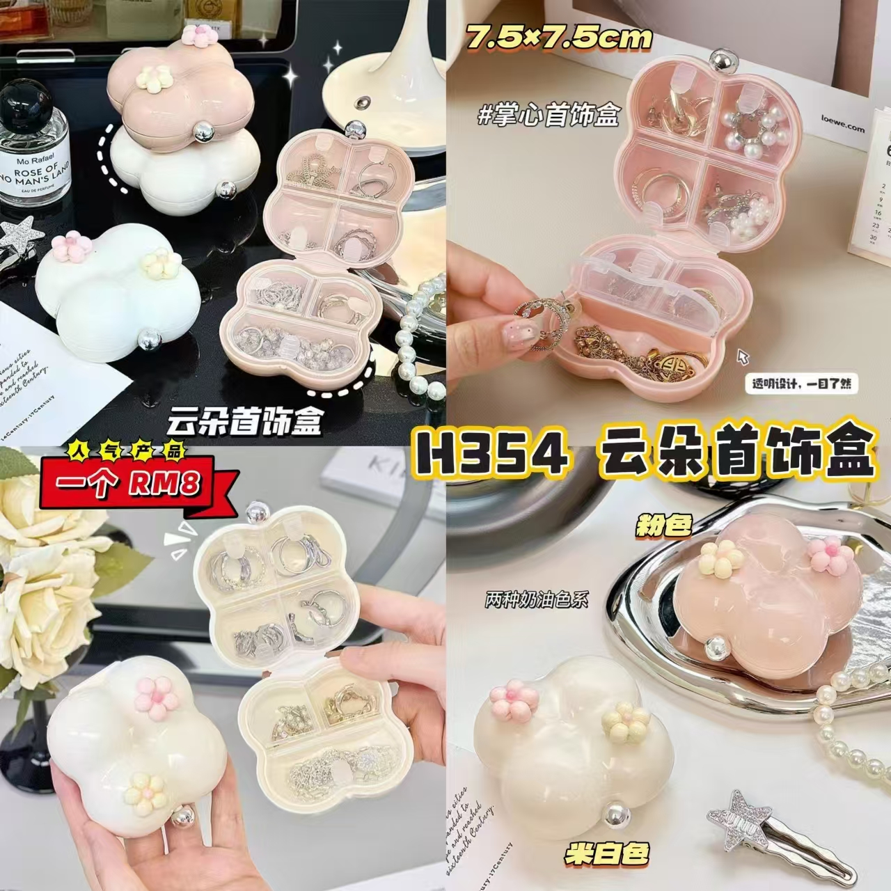 旅行用耳环项链首饰塑料,小巧奶油风耳钉收纳盒